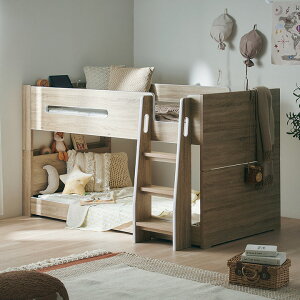 テイストの2段ベッド。子供が小さいうちにはキングベッドとして、小学生からは2段ベッドとして、大きくなったらシングルベッドとしてご使用できるため、成長に合わせて長く使っていただける2段ベッドです。 【材質】本体:北欧パイン...