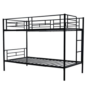 【ブラック】二段ベッド 2段ベッド スチール 耐震 ベッド シングル パイプベッド 2段ベット パイプ 金属製 頑丈 垂直はしご ロータイプ 2段ベッド 業務用二段ベッド 社員寮 学生寮 大人用可。商品サイズ:...