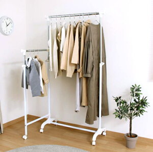 頑丈 ハンガーラック ダブル キャスター付き YIH-W。本体サイズ 幅96×奥行40.5×高さ142.5-162.5cm 重量9kg。材質 スチール(粉体塗装)。耐荷重150kg、1台分のスペースに2列掛け衣類をたくさんかけてもその...