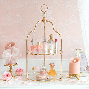 上品なムード漂う、シンプルエレガントな2段トレイ綺麗な曲線で作られたフレームとガラスのプレートで装飾されたディスプレイトレー。アフタヌーンティートレイとしてで使用したり、細々としたアクセサリー小物を飾るのにお使いいただ