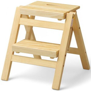 木製タイプの折畳式の踏み台兼椅子です。使わない時は折り畳んでコンパクトに収納可能です。