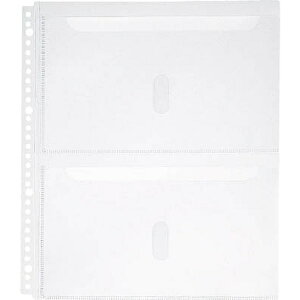 透明ポケットリーフ 透明ポケット2 B5-L判 26穴 品番 S-5120 サイズ 外寸(約)縦269×横202mm ポケット内寸:132×187mm 2コ 素材 ポケット材:再生樹脂100% 仕様 10枚入り、上部に脱落防