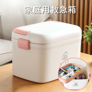 家庭用救急箱|大容量収納・2段トレー構造で使いやすい薬収納ボックス 可愛いデザインと機能性を兼ね備えた家庭用救急箱。 2段トレー構造で薬や絆創膏を整理しやすく、すぐに欲しい薬が見つかります。 大容量でたっぷり収納できるので