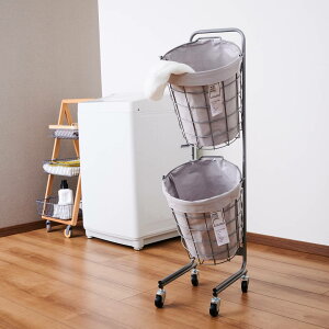 お洒落なランドリーに映えるシックなカラー。タオルや着替えなどお風呂回りの必需品を収納出来るカゴ付きワゴン。キャスター付きで移動も楽々。タオル、着替え、バスグッズなどお風呂の必需品をワゴンですっきり収納◆アイテム別、家族別に洗濯物を分別...