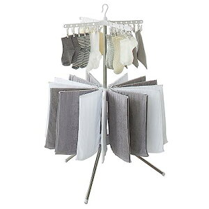 製品仕様:商品サイズ:約68.5*68.5*170cm パッケージサイズ:60.5*22*15.5cm 大容量:靴下やハンカチ等小物24本からタオルが32本も干せる。家族五人でも心配なく、いっぱい干せます。 コンパクト:ハンガーをコン...