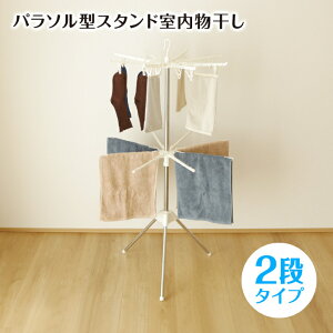コンパクトに効率良く干せる2段パラソルタイプの物干しスタンド〇コンパクトに効率良く干せる2段パラソルタイプの物干しスタンド〇サビに強く丈夫なステンレス巻きスチールパイプを採用〇ピンチハンガー4本(ピンチ16個付き)...