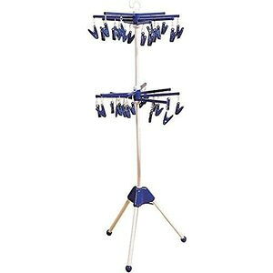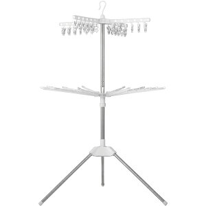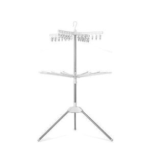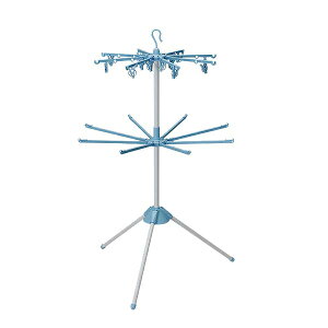 (海外配送) Rakuten International Shipping〇コンパクトに効率良く干せる2段パラソルタイプの物干しスタンド〇サビに強く丈夫なステンレス巻きスチールパイプを採用〇ピンチハンガー4本(ピン...
