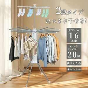 コンパクトに効率良く干せる2段パラソルタイプの物干しスタンド〇コンパクトに効率良く干せる2段パラソルタイプの物干しスタンド〇サビに強く丈夫なステンレス巻きスチールパイプを採用〇ピンチハンガー4本(ピンチ16個付き)...