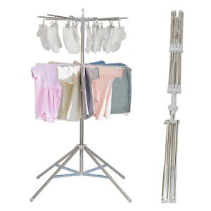 【複数の物を干すための物干し】一度にタオル32枚、小物24枚たっぷり干せる。しっかり支える四本足構造で安定性あり、倒れにくい。 【省スペース物干し】75cm直径で場所を取らなく室内物干し時にピッタリ。折り畳めば幅9cmの隙間に収納可能...