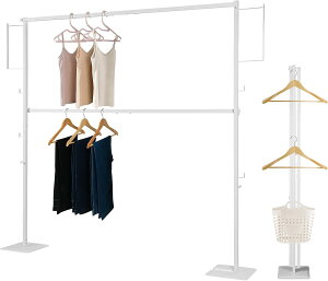 ■【商品名】:ダブルハンガー ■【商品サイズ】:約幅80×奥行51×高さ160cm ■【カラー】:ホワイト/ブラック ■【許容荷重】:約50キロ ■素材:スチール製 ■製品重量:約3.0kg ■商品紹介: 【大容量収納】 1.二段ラッ...