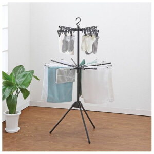 [特長]:■収納時は幅・奥行が約16cm×16cmとコンパクトになる室内物干し。■使用時でも80cm×80cmと場所を取らないコンパクトな作り。■工具不要の簡単組み立て式。■インテリアになじみやすいブラックカラーなので出したままにして...