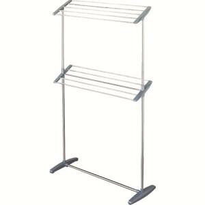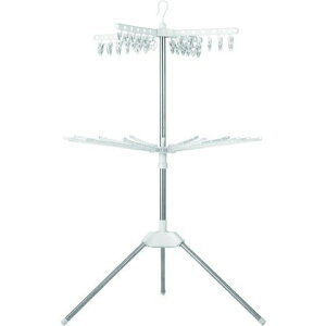 コンパクトに効率良く干せる2段パラソルタイプの物干しスタンド。ピンチハンガー4本(ピンチ16個付き)・タオルハンガー16本。タオルがズレないクリップ付きタオルハンガーを採用しています。
