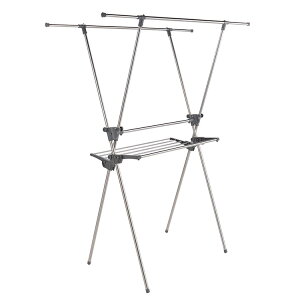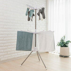 省スペースでもしっかり干せるステンレス室内物干しパラソルです。工具不要で、組み立てが簡単です。小物だけを干したいときは取り外してピンチハンガーとしても使用可。