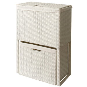 衣類がたっぷり置けて取り出しやすく、分別もできる縦型2段式のラタンランドリーボックス『Diario(ディアリオ)』。取り出しやすい高さでフタ付きの上段とキャスターが付いており出し入れがラクな下段の2段式で