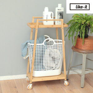 心地よく馴染むナチュラルな風合い すき間に置ける竹製ランドリーワゴン 省スペースにも設置しやすいキャスター付きの竹製ワゴンとバスケットのセット。上段は洗剤などを置くのに便利なトレー仕様で、下段には付属のタウンバスケット
