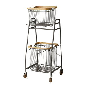 お洒落なランドリーに映えるシックなカラー。タオルや着替えなどお風呂回りの必需品を収納出来るカゴ付きワゴン。キャスター付きで移動も楽々。タオル、着替え、バスグッズなどお風呂の必需品をワゴンですっきり収納◆アイテム別、家族別に洗濯物を分別...