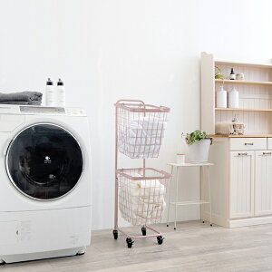 ニュアンスカラーを取り入れて理想のランドリールームに幅広いカラーバリエーションが魅力のランドリーラック。白い服や色柄ものなど、2つのバスケットに分別しながら溜めることで、洗濯時の分ける手間が省けます※商品は「組立式」と