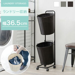 RAN-2431 2段バスケット ランドリーラック 色柄物や汚れた洗濯物を分けて溜められるオシャレな2段ランドリーワゴンです!幅36.5cmのスリム幅で圧迫感を感じさせません。大容量な2段バスケットは、持ち運べて便利です...