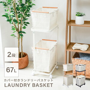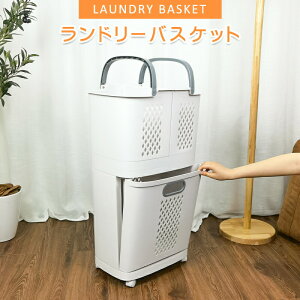 大容量なのにスリムでスタイリッシュなデザイン! 仕分けが便利な2段バスケット! 洗濯物を2つのバスケットに分別でき、洗濯時の手間解消に♪ カバー付きで中が見えない!プライバシーを守ります。