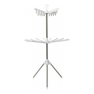 室内用のパラソル型物干し。幅35cmまでのタオルが約16枚掛けられます。上段はピンチハンガーなので、靴下などの小物が干せます。使用時サイズ(約)幅82×奥行82×高さ143cm収納時サイズ(約)幅15×奥行15×高さ164cm材質:パ...