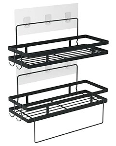 収納ラック 耐荷重15KG 水切り 錆びない 壁掛けラック 穴あけ不要 お風呂/洗面所/キッチンに 2段式 ブラック【商品仕様】入数:2個。寸法:W30.5×D13×H10cm、W31.5×D1...