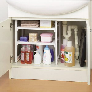 ・ 製品サイズ / 約 幅 38.5 x 奥行 30 x 高さ 40 cm・ 材質 / サイドフレーム、中間リング、フック(大小) : ポリスチレン 棚板 : ポリプロピレン 伸縮パイプ : 鉄(ABC樹脂コーティング) すべ...