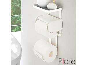 トイレットペーパーホルダーに差し込むだけの簡単取り付け!ホルダーの上下が収納スペースに。下部ホルダーにはトイレットペーパーロールのストックを収納可能。トレーは掃除用具の収納やスマートフォンの一時置きなどに使えます。 商