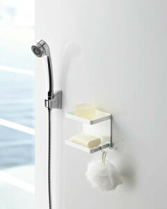磁石で浴室の壁面に簡単に設置。ソープディスペンサーや洗顔チューブなども置けるので、ちょっとした収納ラックとしても活用できます 山崎実業