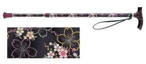 【介護用品:伸縮杖】 鮮やかな花柄の伸縮式ステッキです。 ●サイズ/長さ65―87.5cm(10段階調節) ●重量/270g ●色/ブルー・ブラック・レッド ●材質/本体 :アルミ グリップ:木製 ●先ゴ