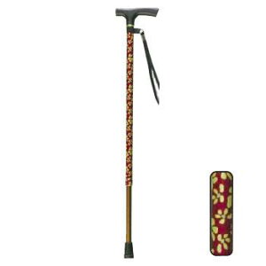 【特長】・折りたたみ可能で保管も持ち運びにも便利です。・ボタンで伸縮します。・杖の絵柄に未発表の京友禅をほどこし、切れ目がないよう工夫しました。・カラフルではげにくいアルトマイト塗装を採用、キズがつきにくいのが特徴で