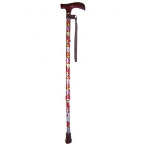 ※当店は介護保険の指定事業者(特定福祉用具販売事業者)ではございません。介護保険でのご購入はできませんので予めご了承ください。 鮮やかな花柄の伸縮式ステッキです。 ○65〜87.5cm・2.5cmピッチ ○握り/木製<br