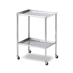 ●天板と棚板は転落防止用の折り上げ加工を施しています。●処置用としても、器具運搬用としても使用可能で用途を選びません。●材質:ステンレス(※SUS304と同等の特性を持ち磁性を有するステンレス鋼材です。)●キャスター:φ50mm(
