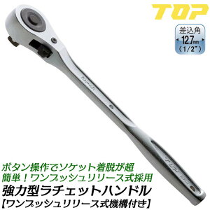 商品情報メーカートップ工業品番RH-4RP仕様・スペック【差込角】12.7mm(1/2)【材質】S55C【ギア数】24(15°送り)【特長】ソケットワンプッシュリリース式【生産国】日本■耐久性抜群の強力型タイプ。過酷な環境下でも安定し...