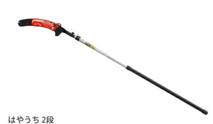 女性にもおすすめ!【特長】高い位置になればなるほど鋸刃にかかる力がダイレクト に伝わらず逃げてしまうという従来の直刃の高枝鋸の 問題を解消する為に、カーブソーの「自然に切る方向へ 力が働く」という利点を高枝鋸にも応