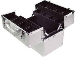【特長】両開き2段式です。仕切板が取り外し自由な、ツールケース4段付です。内装は高級感のある合成皮革貼り仕上げです。クロムメッキ仕上げのパッチン錠付です。取手部はダイキャスト製で耐荷重12kgです。精密仕上げによりスムーズな