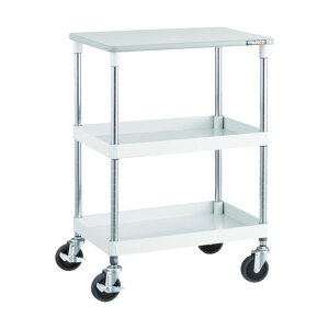 【商品説明】●ボルトレスで組立簡単。●棚板を逆さにするだけで、皿型・フラット型と組み替えることができます。●レベル調整の可能な樹脂製アジャスターを採用。●作業用途に応じてワゴンの高さを調整できます。●機械周り、ライン