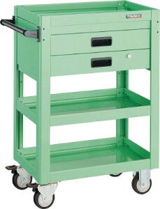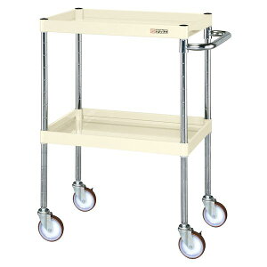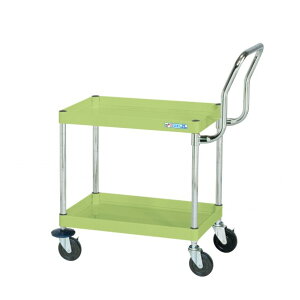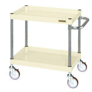 【商品説明】●ボルトレスで組立簡単。●棚板を逆さにするだけで、皿型・フラット型と組み替えることができます。●ゴム車を使用しているツールワゴンですので、表面硬度が低く、弾性を持っている為、凹凸のある路面でも容易に走行し