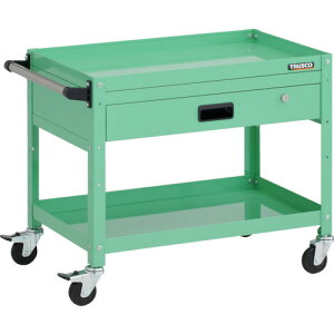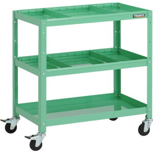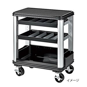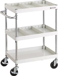 【商品説明】●ボルトレスで組立簡単。●棚板を逆さにするだけで、皿型・フラット型と組み替えることができます。●ゴム車を使用しているツールワゴンですので、表面硬度が低く、弾性を持っている為、凹凸のある路面でも容易に走行し
