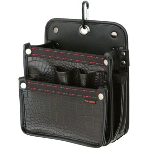 特長 ●2つのセフで着脱性アップした「セフツインフック」です。 ●高強度でしなやかな高耐久合成皮革です。 ●光沢と凹凸が独特の高級感と存在感を放つクロコ調です。 ●多段ポケット&大口ポケットの腰袋です。 ●ペンチ、ニッパー、全