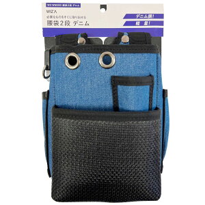 仕様 材質:(生地)ポリエステル・デニム、(金具)スチールメッキ 製品サイズ(mm) 幅×奥行×高さ:240×200×120 製品重量(g) 315 商品説明 文具や小物を入れる腰袋として。 大きさの違うポケットで用途に合わせて使い分...