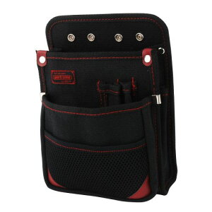 【特長】●汚れが目立ちにくいブラックを基調としたデザインです。●合皮を使用しており、高級感を兼ね備えた工具差しです。●開きやすく形状がくずれやすい部分を補強しています。●屋内・屋外作業の工具の収納に。●ポリエステル330d