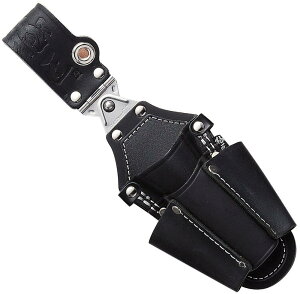 材質:本体部/牛床革、ケース背面部/PE材、ダブルスイングジョイント/ステンレスツールがしっかり収納できるサイズで設計 安全ロープの着脱も楽々 大型のアイレットスペースを採用 素材には変色しづらい黒革を採用 縫製は太目の糸で二重仕