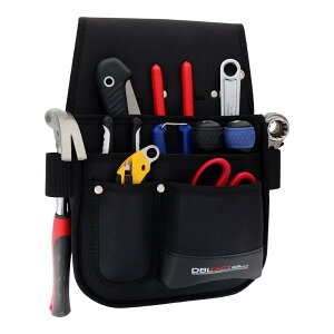 作業時にベルト通し部分がヨレないように補強加工が施してあります ●使いやすさを徹底追求した電工用腰袋2段 【材質・仕上げ】 ●カワテック、ナイロンドビー、ポリドビー <b...