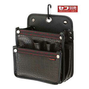 【特長】 ●2つのセフで着脱性アップした「セフツインフック」 ●高強度でしなやかな高耐久合成皮革 ●光沢と凹凸が独特の高級感と存在感を放つクロコ調 ●多段ポケット&大口ポケットの腰袋 ●ペンチ、ニッパー、全ネジ回しや検電器など