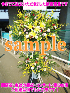 お祝い用スタンド花・開店祝い・会場の花・展示会などにご利用下さい。 立て札が付きますので、ご注文フォームにてご記入ください。 お色や、花の指定などございまさしたら、こちらまでご連絡下さい。 季節や入荷の状況などで花材は変わ