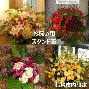 【最短出荷日】 仕入れの関係上、お届け日のお届けに1週間ほどお日にちをいただきます。 【お届け内容】 お祝いスタンド花 画像は一例です。使用するお花は季節、仕入れ状況により異なるので仕上がりはお任せと