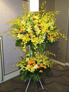 縦:約195cm横:約100cm奥行き:40cm豪華な2段の生花スタンドです。 会社名、個人名、一言お祝いのメッセージなど添えて、贈り物におすすめです。 当店、お任せでの商品の為、花種...