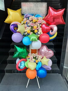 【最短出荷日】 仕入の関係上、お届けに2〜5日程お日にちを頂く場合がございます。 【お届け内容】 お祝いバルーンスタンド花 画像は一例です。使用するお花は季節、仕入れ状況により異なるので仕上が