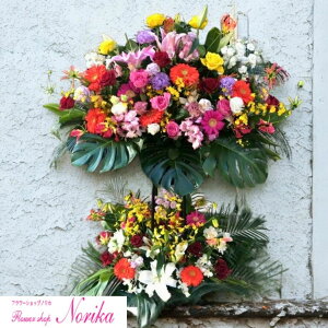お届け商品 スタンド花 2段 (税別) お届け日 仕入れの関係上、お届けに1週間程お日にちをいただいております。お急ぎの場合は事前にご連絡ください。 使用花材 季節の花をメインにレインボーローズを入れておまかせで制作いたします...
