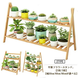 竹製フラワースタンド。【2段/3段】【幅50cm/60cm/80cmが選べる】このフラワースタンドの本体は、健康的で環境に優しく、耐久性と質感のある天然素材である竹で作られています。棚板は水はけや風通しのよいすのこ仕様で...